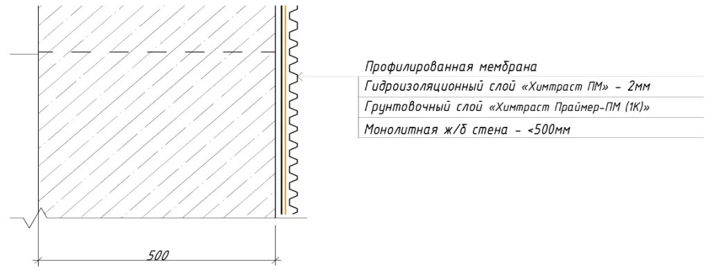 Рисунок 1 — Устройство гидроизоляционной системы «Химтраст ПМ» по системе изоляции открытым способом