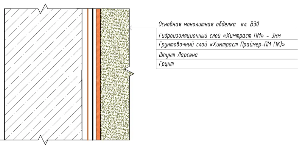 Рисунок 2 — Устройство гидроизоляционной системы «Химтраст ПМ» методом «стена в грунте»